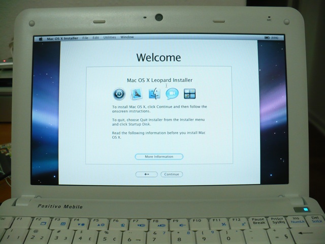 OK, estou oficialmente impressionado. Terminados os testes com o Windows no Positivo Mobo White 1050, e enquanto baixava a ISO do Ubuntu 8.04, resolvi brincar com a distribuição do Mac OS X Leopard customizada para o MSI Wind, conhecida como “MSI Wind OSX”. Dizia a lenda que o Mac OS X rodava muito bem no micrinho, e resolvi conferir com meus próprios olhos.